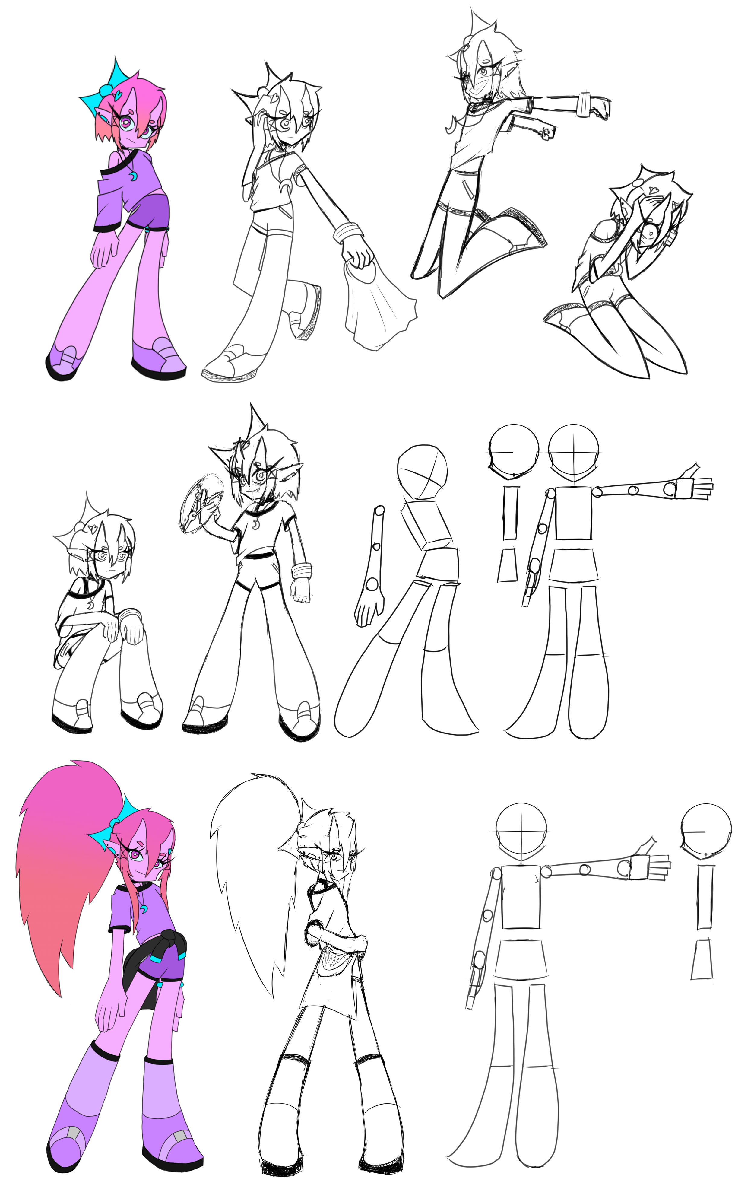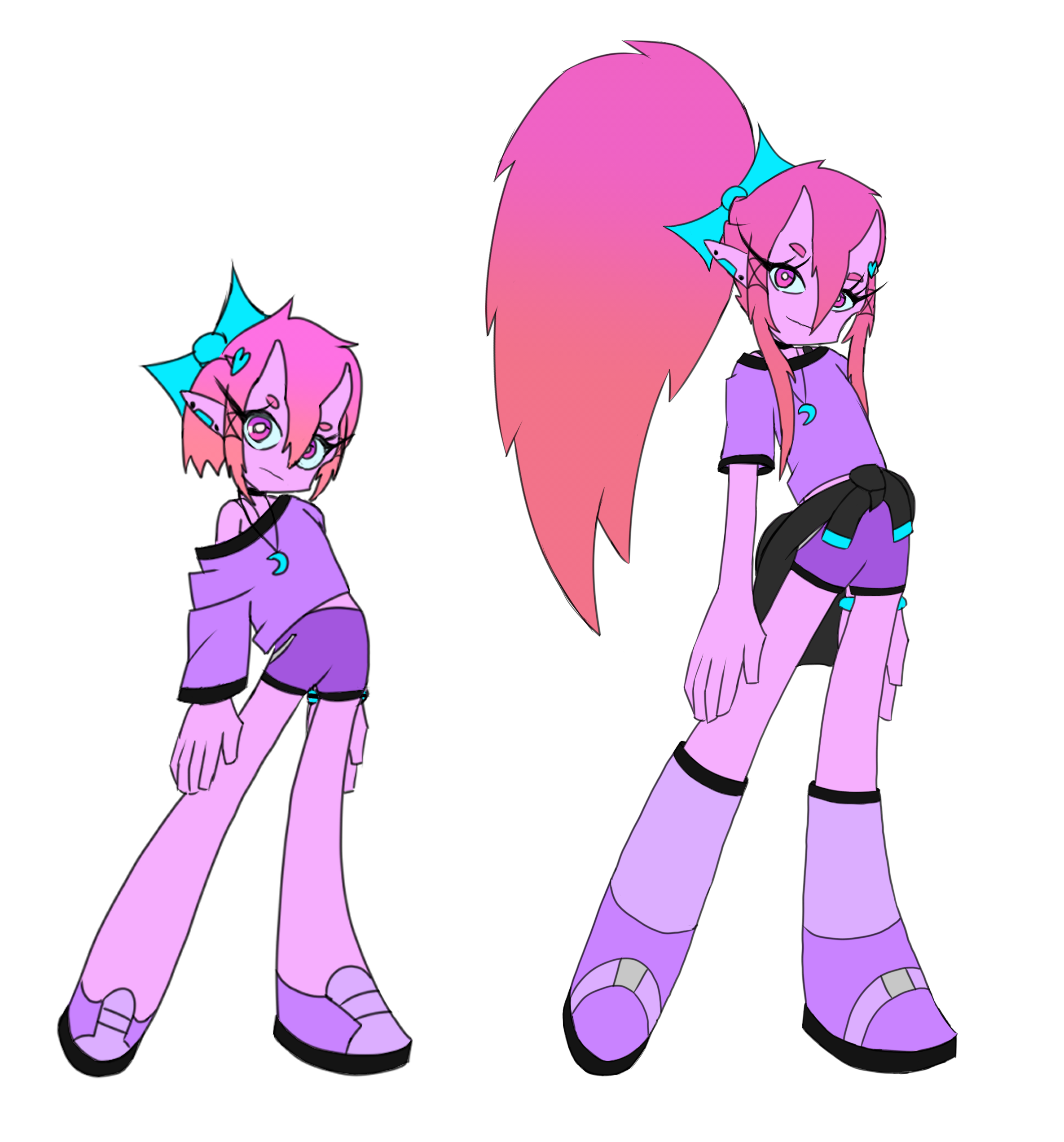 Description: Character design for protagonist of a short animated film titled Mail?. In this film, Tanta is tormented by an empty mailbox as she patiently waits for the letter she was promised... for years if necessary. The film made it through concepting, scripting and storyboarding, but was unfortunately never completed. Art style and default pose heavily inspired by Panty & Stocking with Garterbelt.